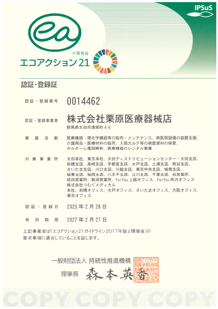 環境省が策定した日本独自の環境マネジメントシステム(EMS)である「エコアクション21」の認証を取得いたしました。